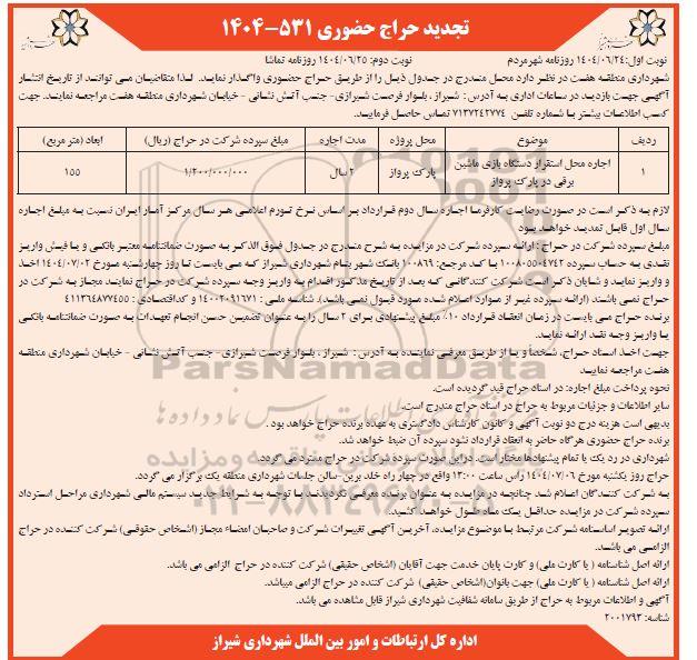 تجدید حراح حضوری اجاره محل استقرار دستگاه بازی ماشین برقی در پارک پرواز - نوبت ودم, تجدید حراح حضوری اجاره محل استقرار دستگاه بازی ماشین برقی در پارک پرواز - نوبت ودم