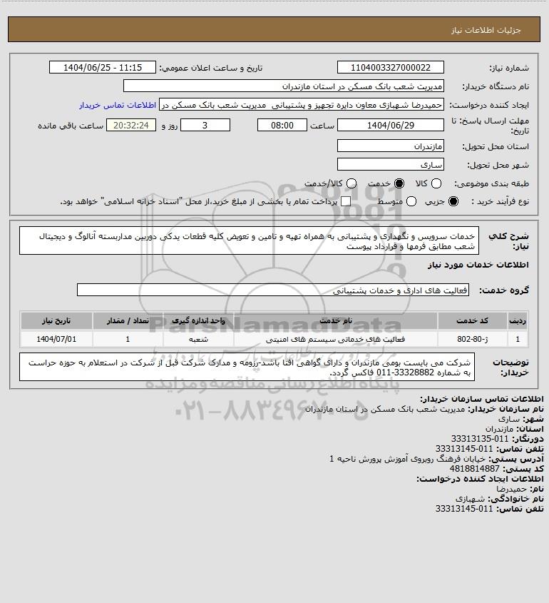 نام سازمان خریدار: مدیریت شعب بانک مسکن در استان مازندران