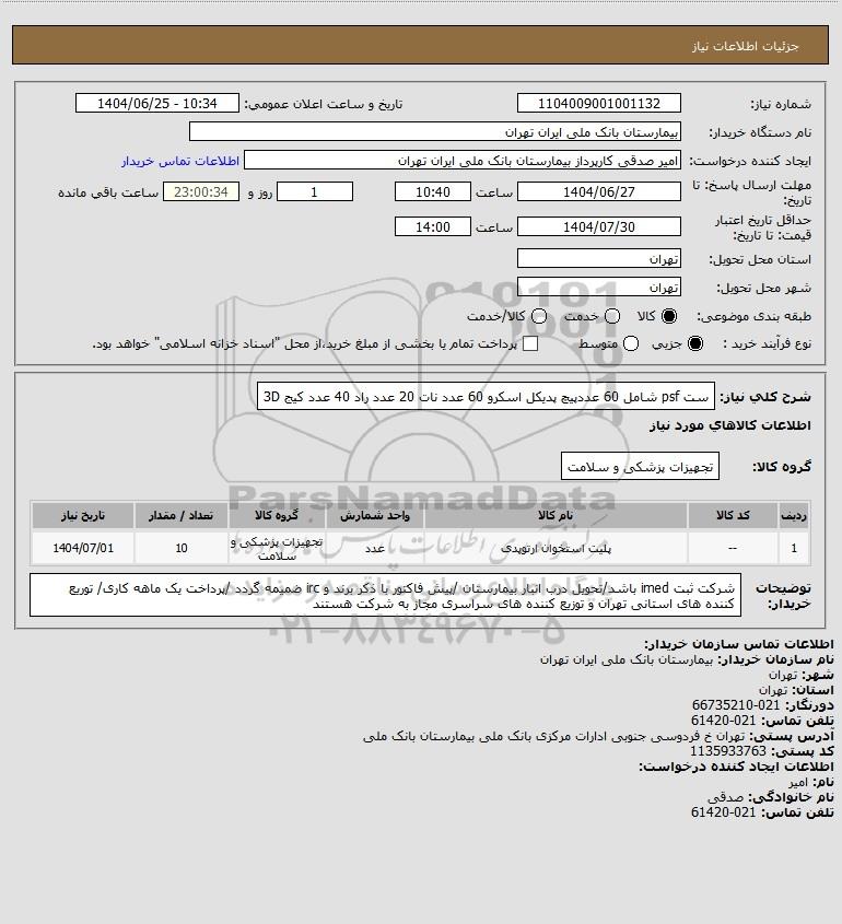 نام سازمان خریدار: بیمارستان بانک ملی ایران تهران