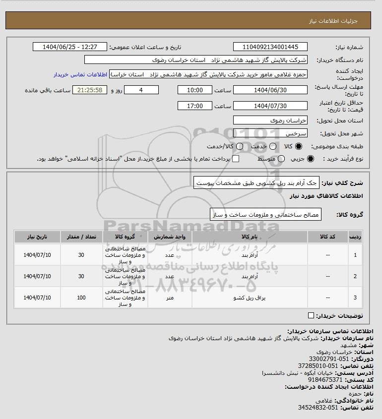 نام دستگاه خریدار:شرکت پالایش گاز شهید هاشمی نژاد استان خراسان رضوی