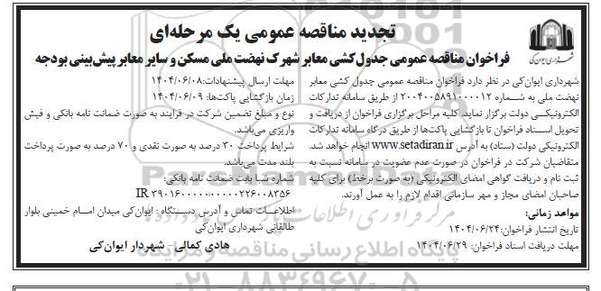 فراخوان مناقصه عمومی جدول کشی معابر شهرک نهضت ملی مسکن و سایر معابر پیش بینی بودجه