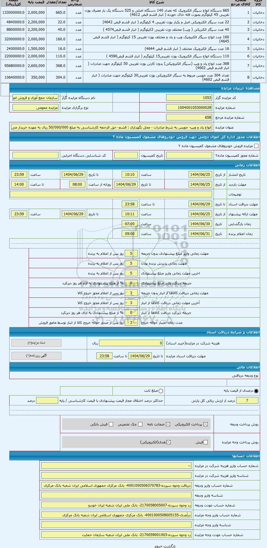 | کد مزایده گزار | 1053 | نام دستگاه مزایده گزار | سازمان جمع آوری و فروش اموال تملیکی | |