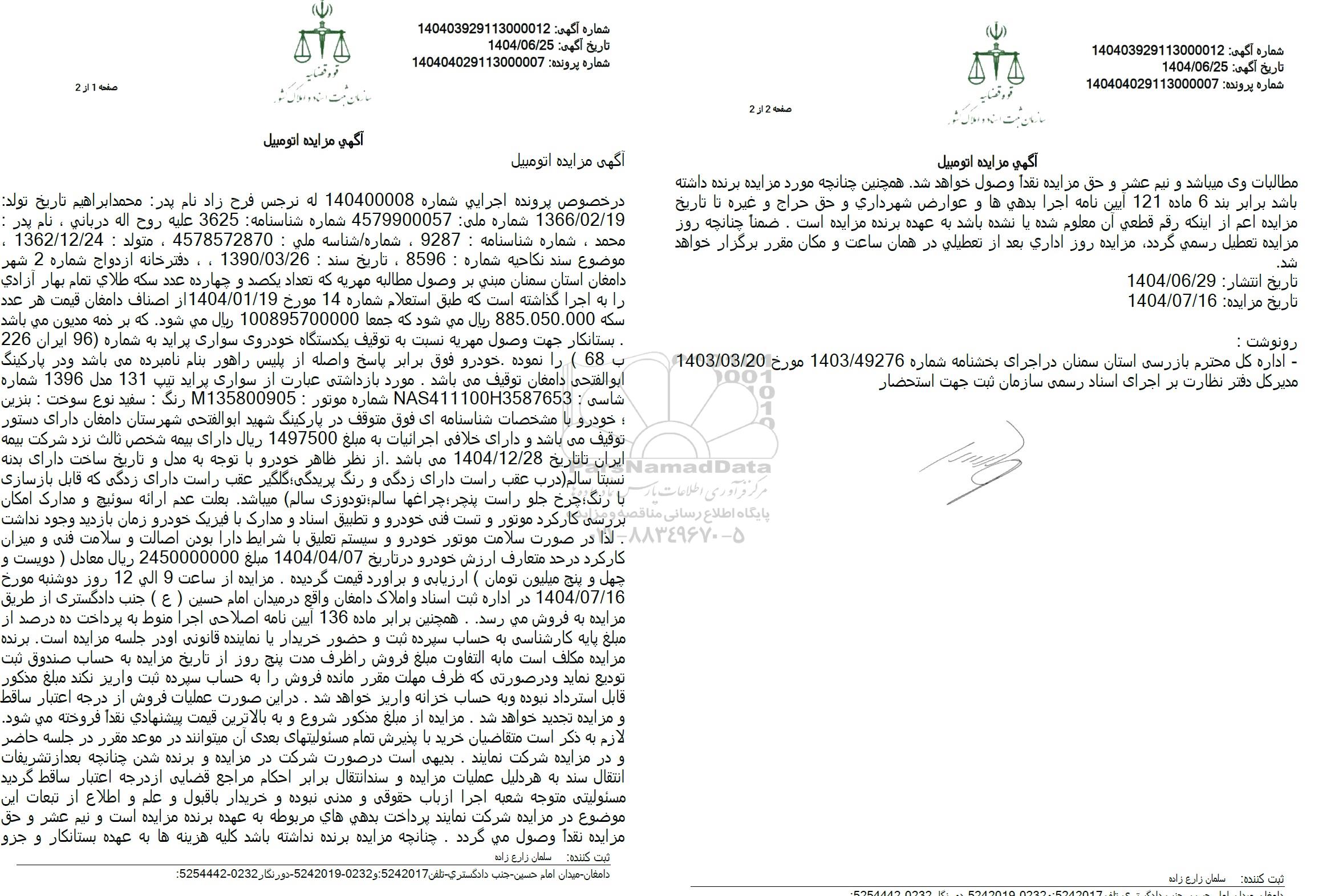 مزایده عمومی مزایده فروش خودروی پراید برگزار میگردد. از کلیه افراد متخصص و شرکتهای واجد شرایط دعوت به عمل میآید تا در این مزایده با کد خبرگزاری پارس نماد : 9557076 شرکت نمایند تاریخ شروع مزایده : 1404/06/25 مهلت شرکت در مزایده: تا پایان روز 1404/07/16 مکان برگزاری اموال واگذاری استانهای سمنان و دستهبندیهای مربوط به این حراجی انواع خودرو سبک میباشد.