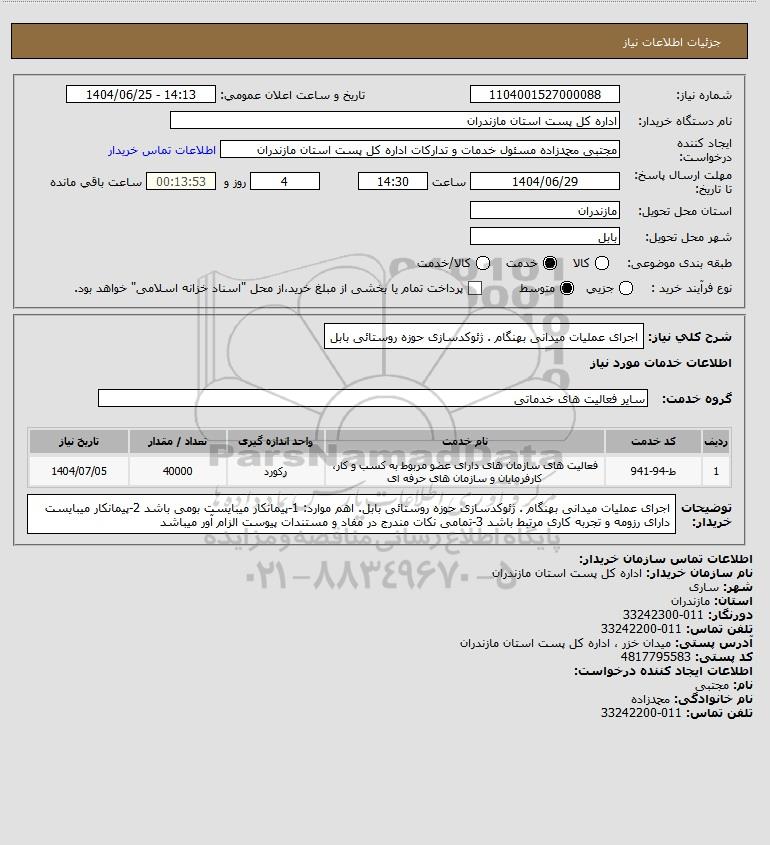 استعلام اجرای عملیات میدانی بهنگام . ژئوکدسازی حوزه روستائی بابل, استعلام اجرای عملیات میدانی بهنگام . ژئوکدسازی حوزه روستائی بابل