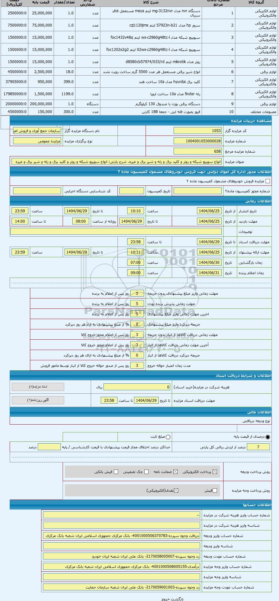| عنوان مزایده | انواع سوییچ شبکه و روتر و کلید برق و رله و شیر برق و غیره | |||