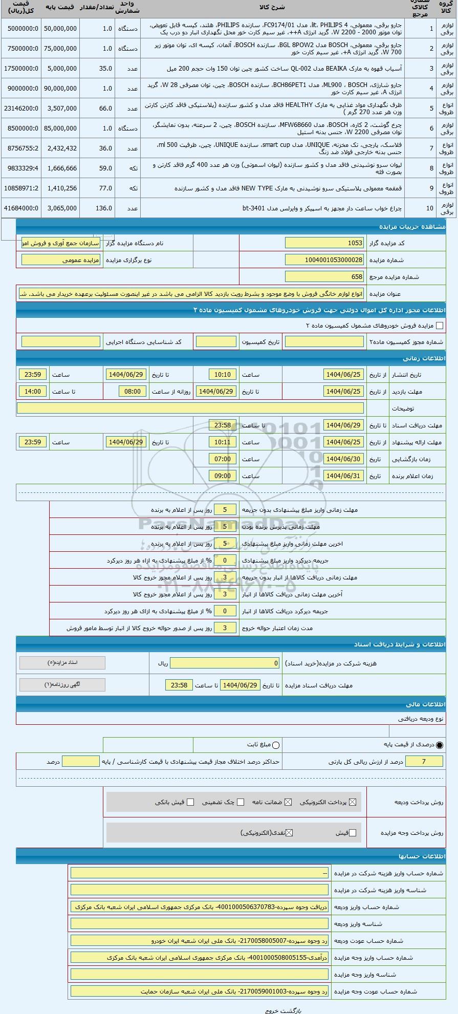 | کد مزایده گزار | 1053 | نام دستگاه مزایده گزار | سازمان جمع آوری و فروش اموال تملیکی | |