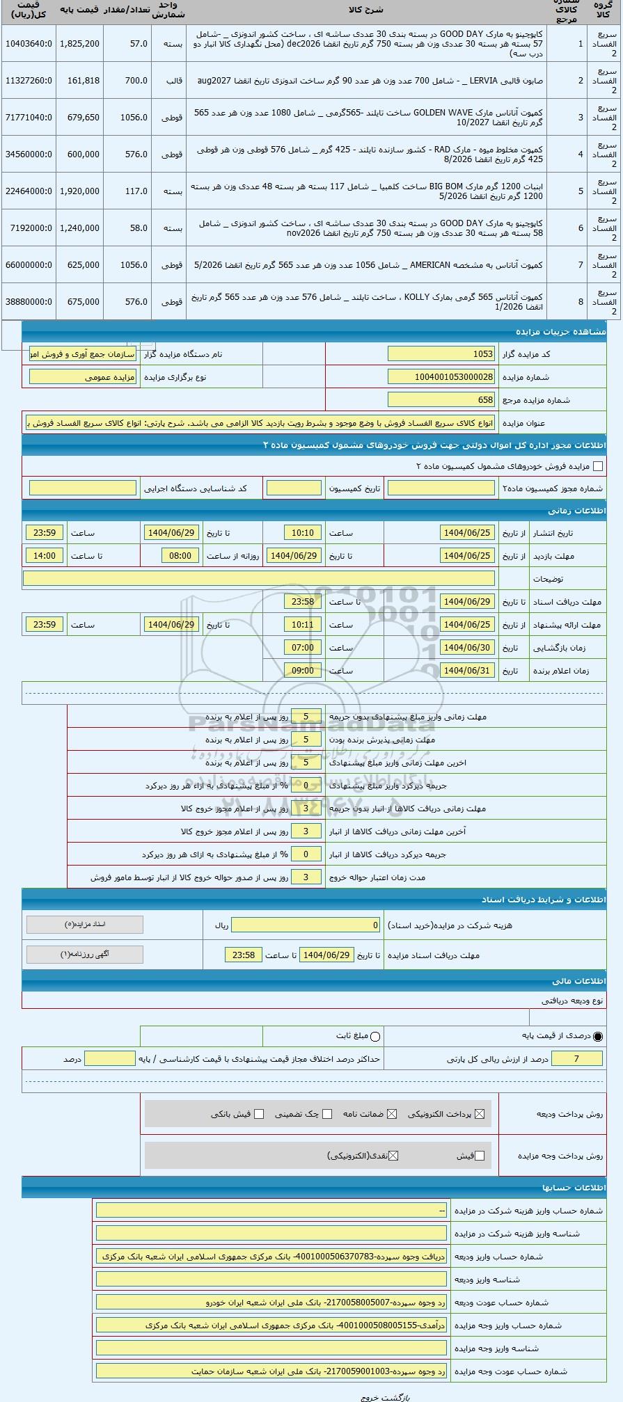 | کد مزایده گزار | 1053 | نام دستگاه مزایده گزار | سازمان جمع آوری و فروش اموال تملیکی | |