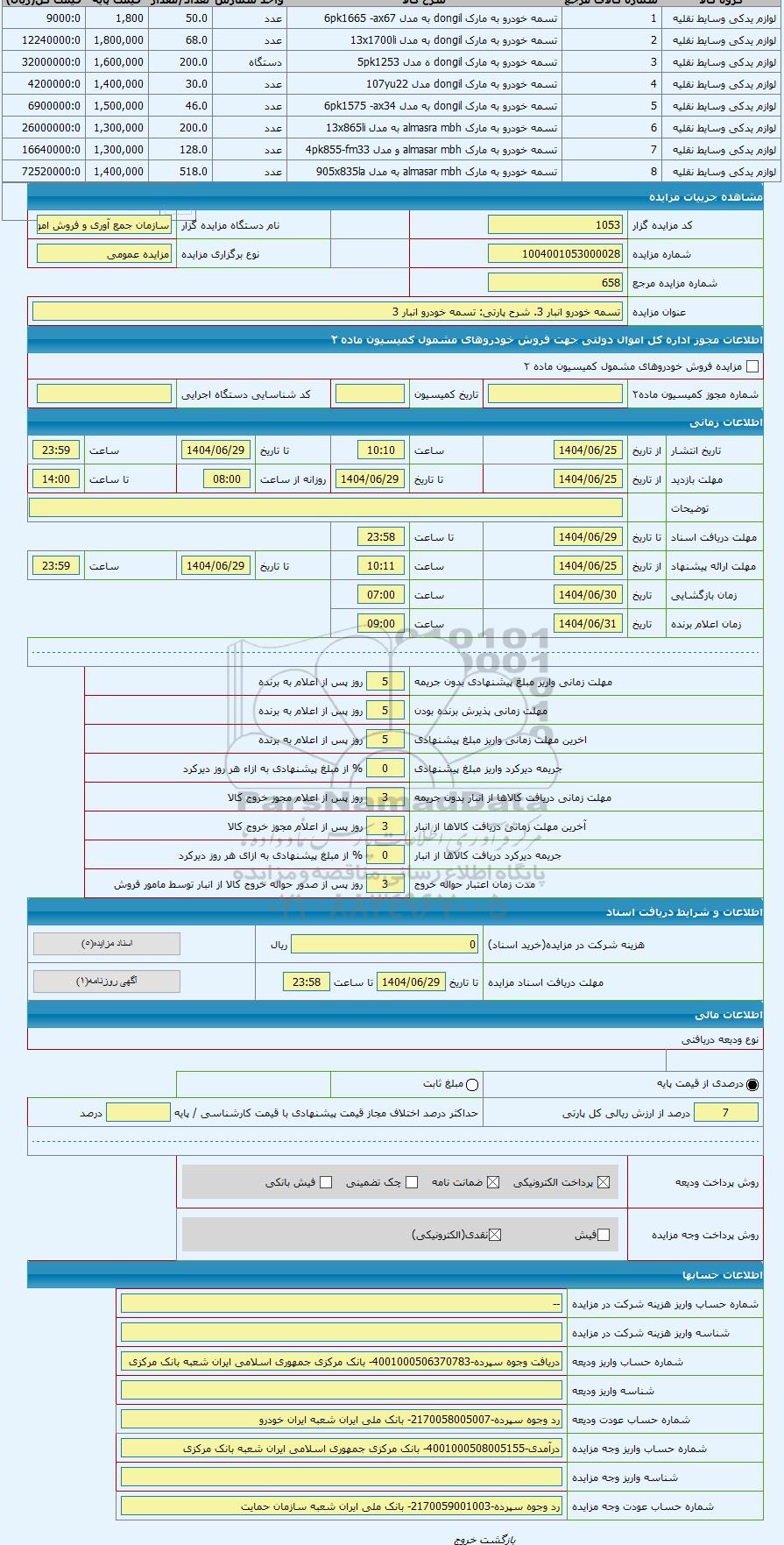 شماره پارتی1104001053011301نوع برگزاری مزایده مزایده عمومی