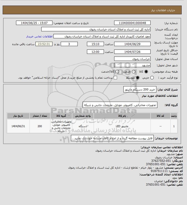 شرح کلی نیاز: خرید 200 دستگاه مانیتور