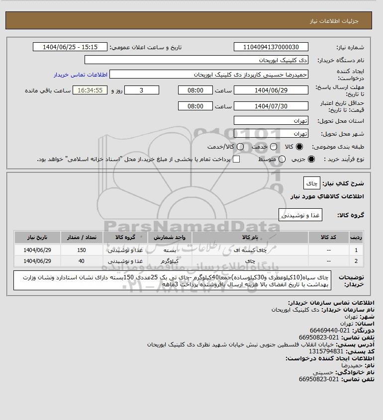 | 2 | -- | چای | کیلوگرم | غذا و نوشیدنی | 40 | 1404/06/29 |