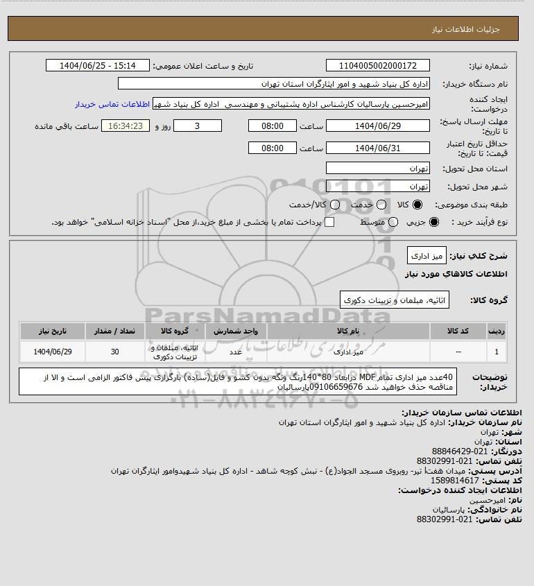 نام دستگاه خریدار:اداره کل بنیاد شهید و امور ایثارگران استان تهران