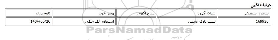 | 169930 | تست بلاک زیمنس | استعلام الکترونیکی | 1404/06/26 |