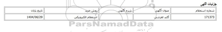 | 171373 | گاید لغزشی | استعلام الکترونیکی | 1404/06/29 |