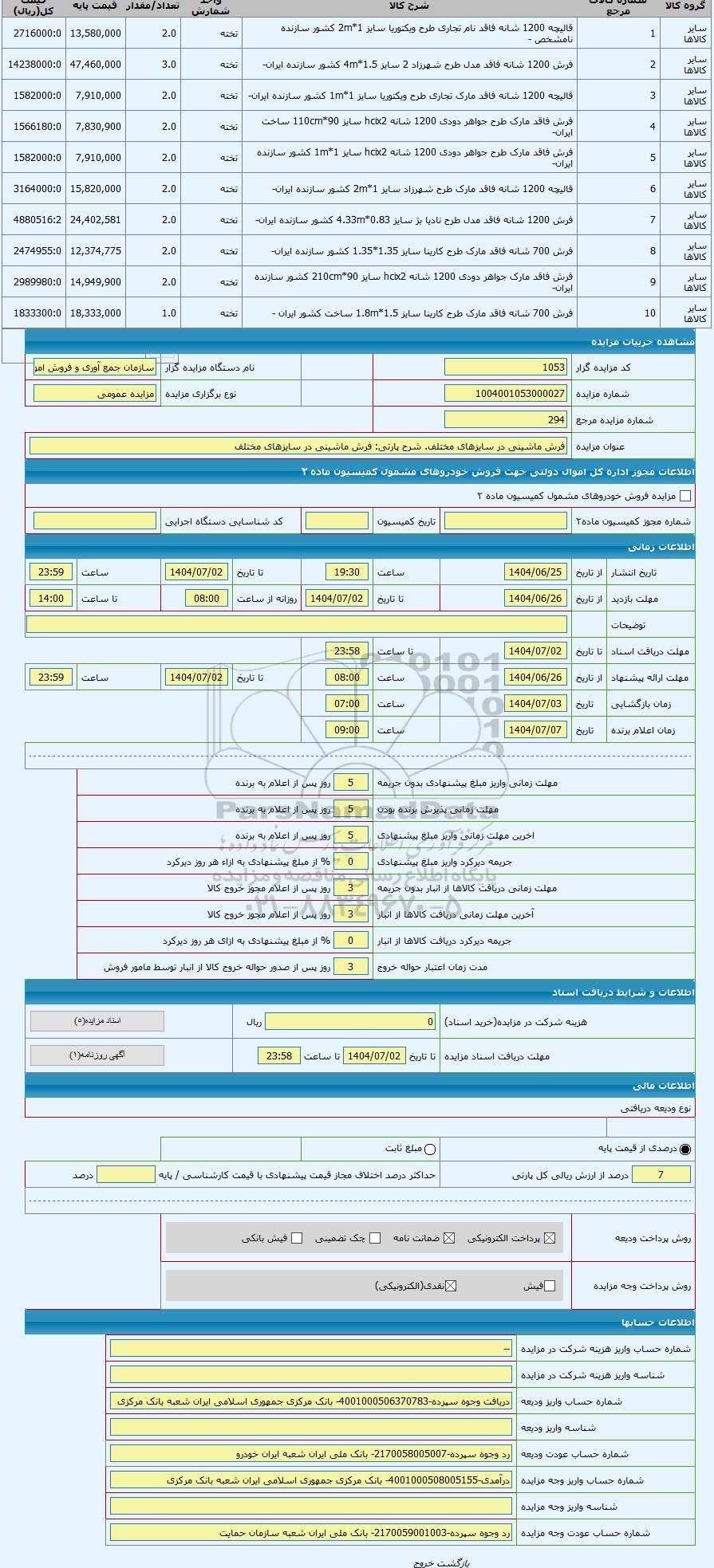 کد مزایده گزار1053نام دستگاه مزایده گزارسازمان جمع آوری و فروش اموال تملیکی
