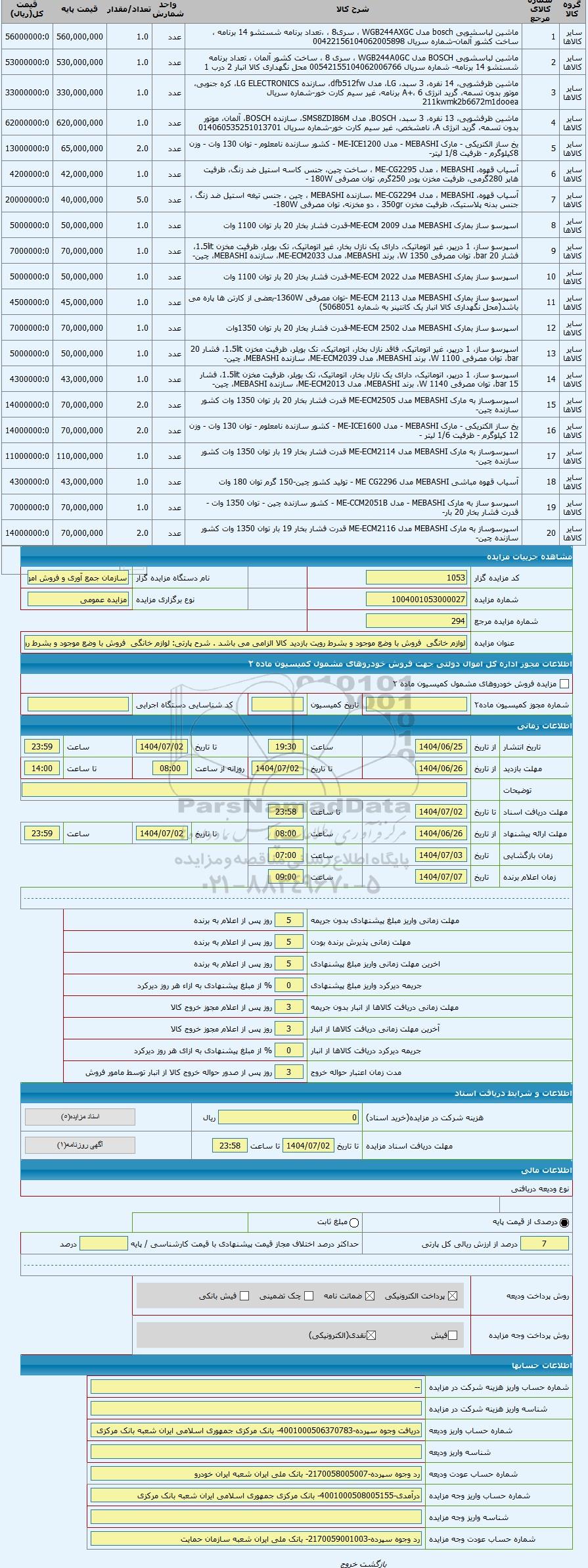 | کد مزایده گزار | 1053 | نام دستگاه مزایده گزار | سازمان جمع آوری و فروش اموال تملیکی | |