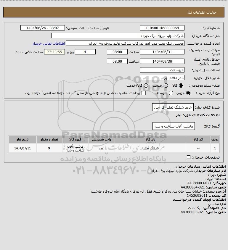 نام دستگاه خریدار:شرکت تولید نیروی برق تهران