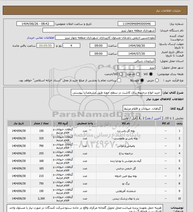 شرح کلی نیاز: خرید انواع درختچه برای کاشت در سطح حوزه طبق مشخصات پیوستی