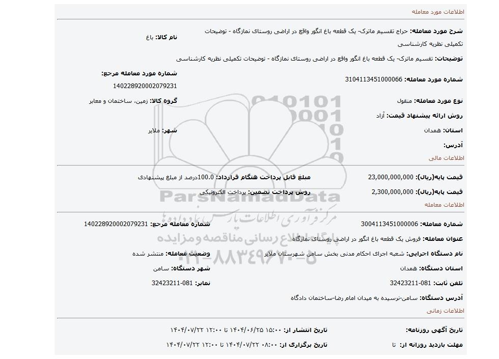 | شماره مورد معامله: 3104113451000066 | شماره مورد معامله مرجع: 140228920002079231 | |