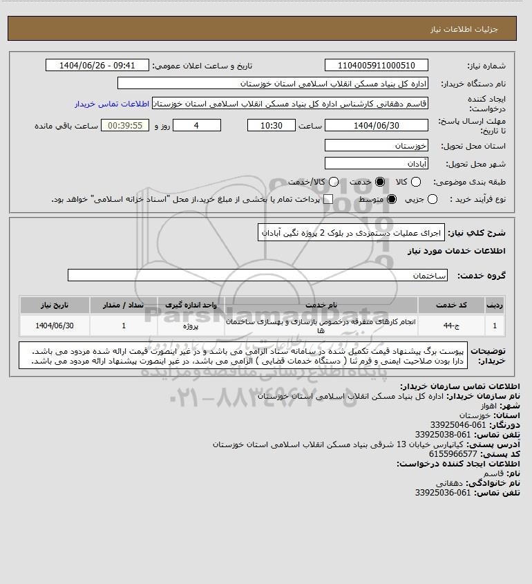 نام دستگاه خریدار:اداره کل بنیاد مسکن انقلاب اسلامی استان خوزستان
