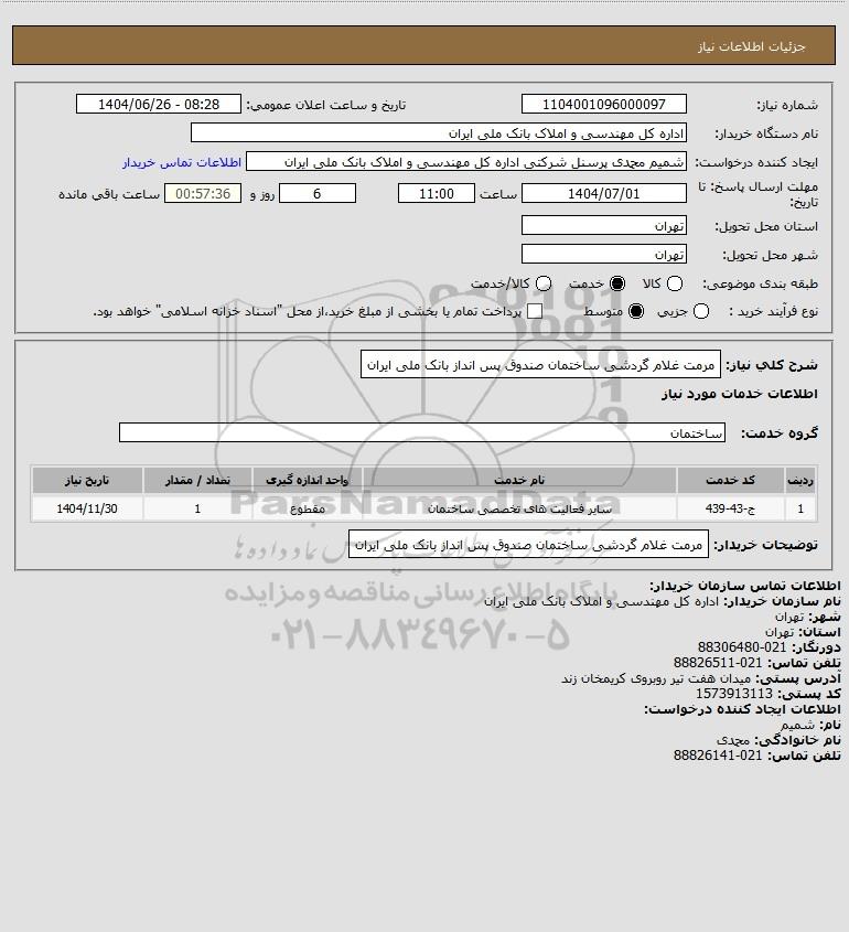 نام دستگاه خریدار:اداره کل مهندسی و املاک بانک ملی ایران