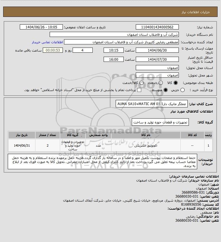 شرح کلی نیاز: عملگر ماتیک دارAUMA SA10+MATIC AM 01.1