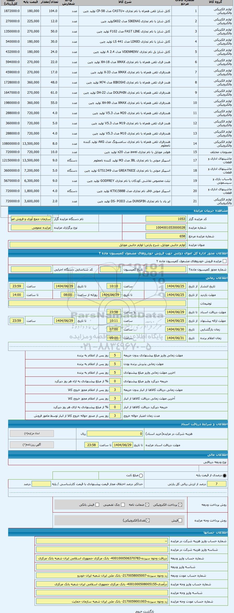 | عنوان مزایده | لوازم جانبی موبایل | |||