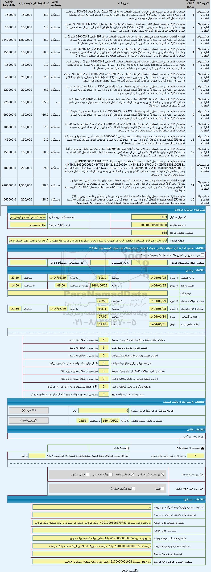 شماره پارتی1104001053011474نوع برگزاری مزایده مزایده عمومی