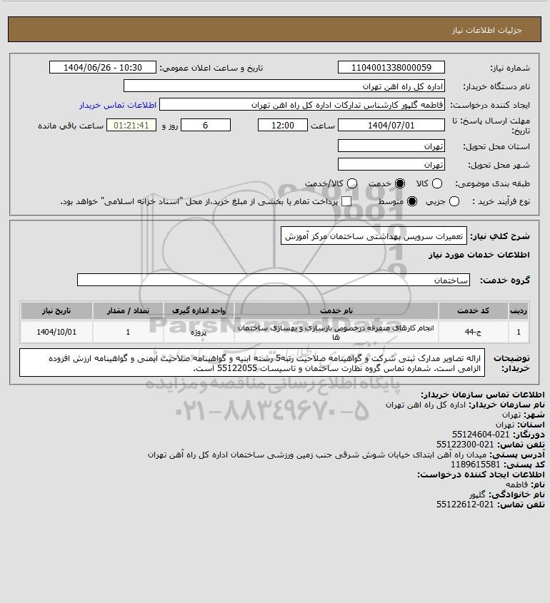 توضیحات خریدار:ارائه تصاویر مدارک ثبتی شرکت و گواهینامه صلاحیت رتبه5 رشته ابنیه و گواهینامه صلاحیت ایمنی و گواهینامه ارزش افزوده الزامی است.