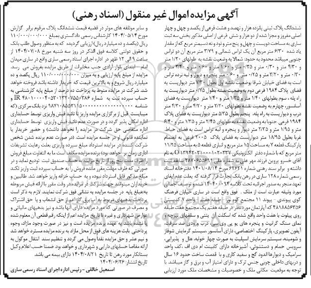 آگهی مزایده اموال غیرمنقول (اسناد رهنی)