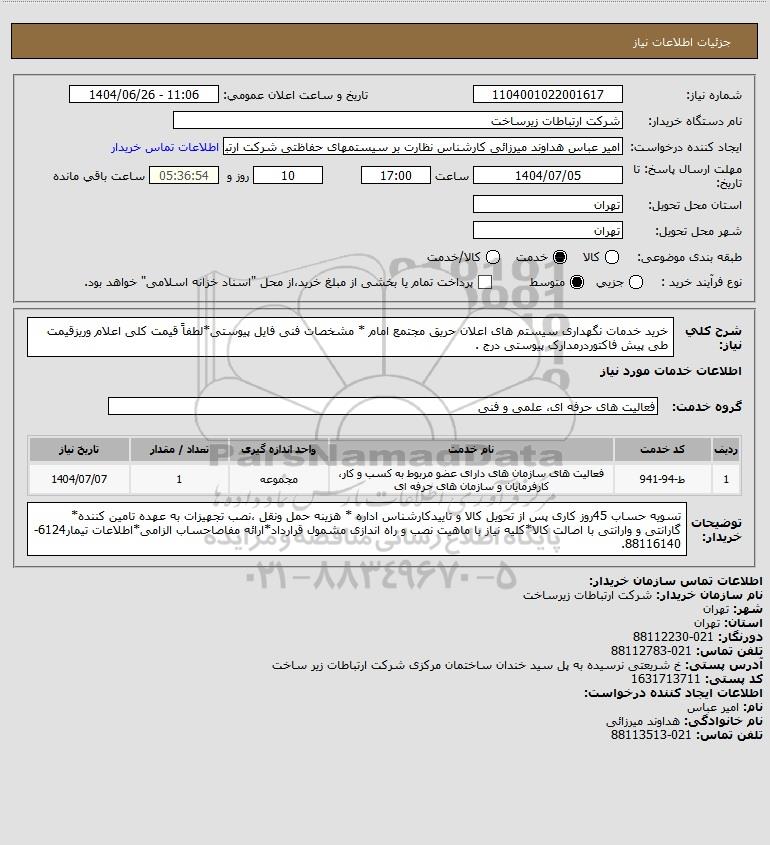 نام دستگاه خریدار:شرکت ارتباطات زیرساخت