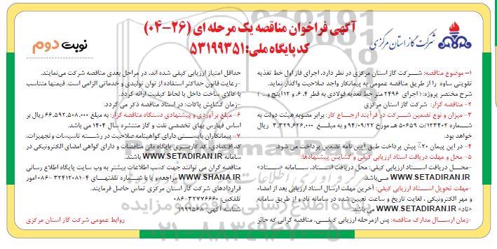 آگهی فراخوان مناقصه یک مرحله ای (26-04) نوبت دوم