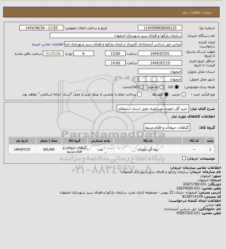 نام دستگاه خریدار:سازمان پارکها و فضای سبز شهرداری اصفهان