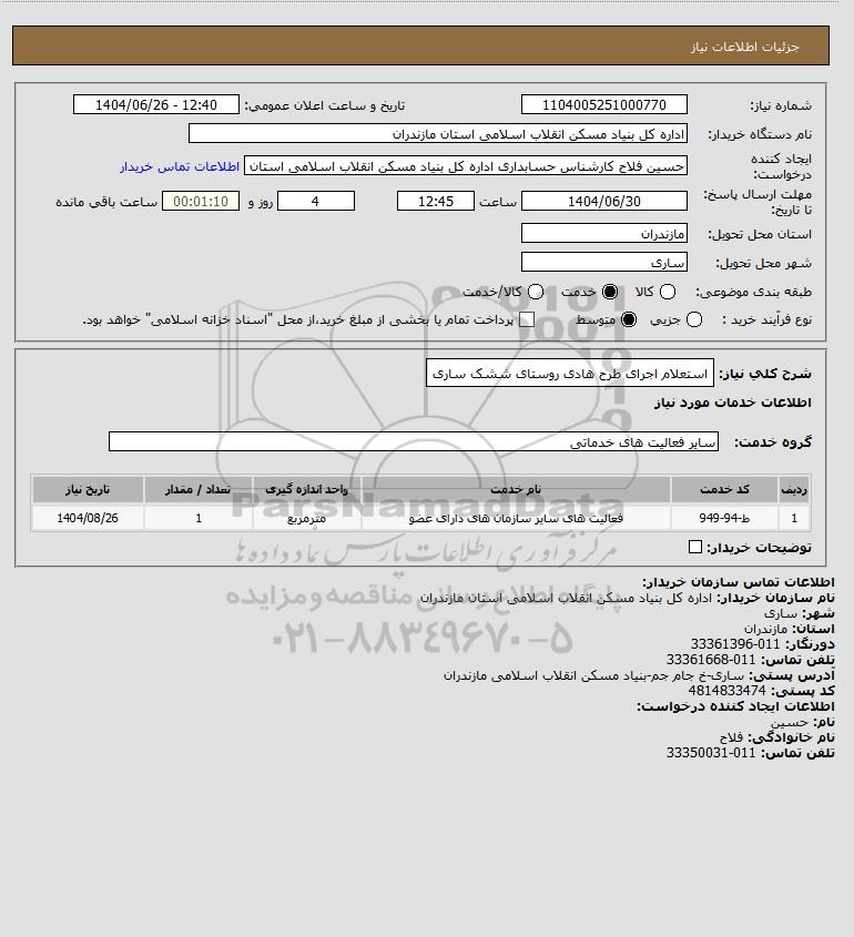 شرح کلی نیاز: استعلام اجرای طرح هادی روستای ششک ساری