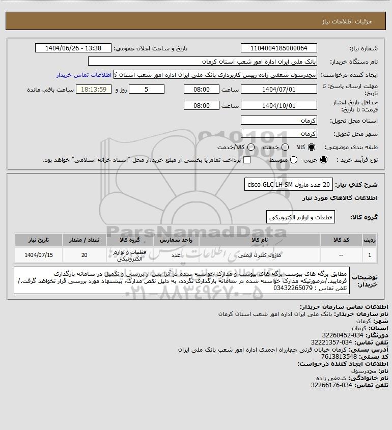 شرح کلی نیاز: 20 عدد ماژول cisco GLC-LH-SM