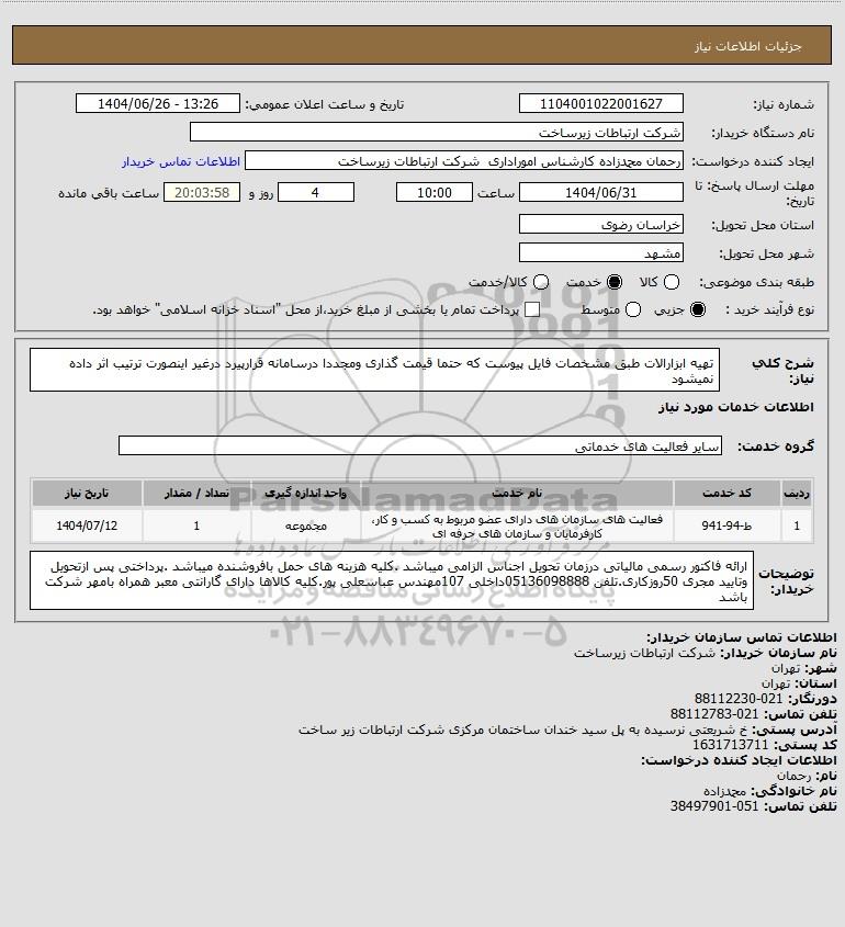 نام سازمان خریدار: شرکت ارتباطات زیرساخت