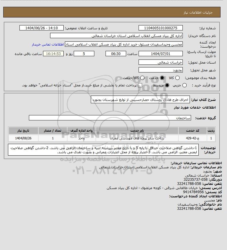 نام دستگاه خریدار:اداره کل بنیاد مسکن انقلاب اسلامی استان خراسان شمالی