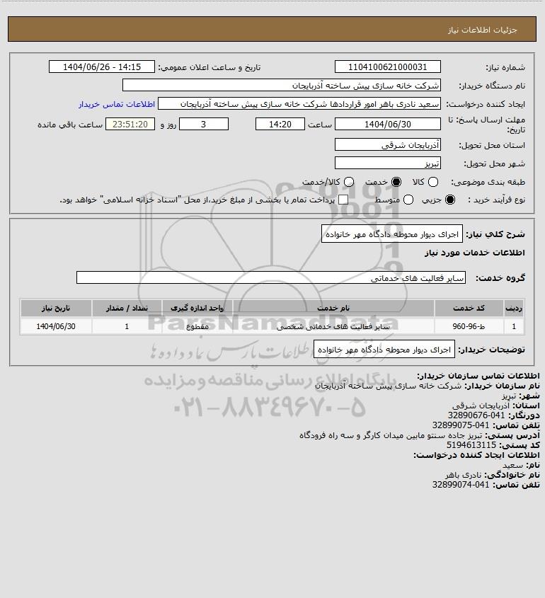 شرح کلی نیاز: اجرای دیوار محوطه دادگاه مهر خانواده