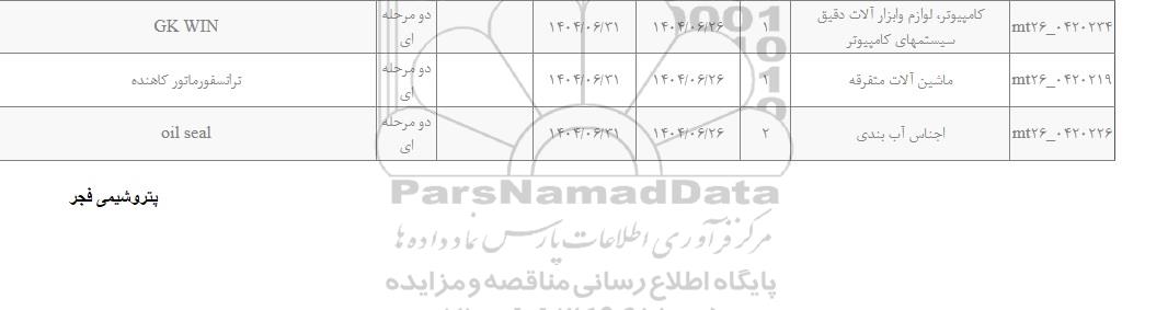 | mt26-0420213 | کامپیوتر لوازم و ابزار آلات دقیق سیستمهای کامپیوتر | 1 | 1404.6.31 | GK WIN |