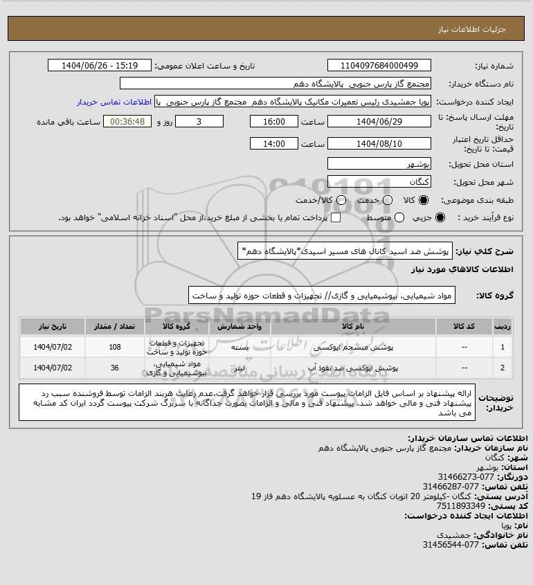 شرح کلی نیاز: پوشش ضد اسید کانال های مسیر اسیدی*پالایشگاه دهم*