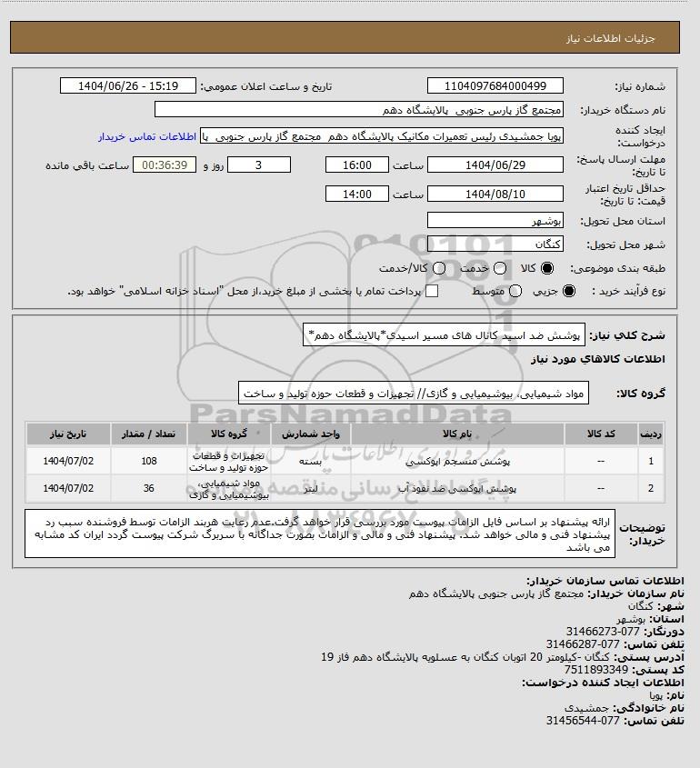 شرح کلی نیاز: پوشش ضد اسید کانال های مسیر اسیدی*پالایشگاه دهم*