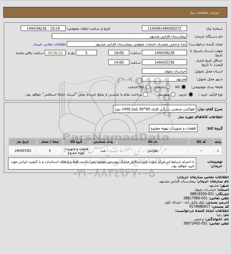 نام دستگاه خریدار:بیمارستان فارابی مشهد