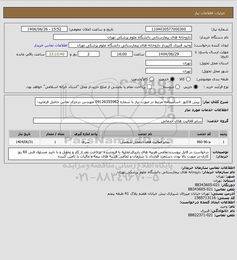 نام دستگاه خریدار:داروخانه های بیمارستانی دانشگاه علوم پزشکی تهران