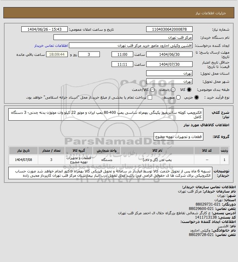 نام دستگاه خریدار:مرکز قلب تهران