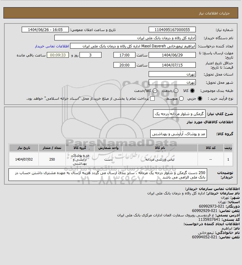 نام دستگاه خریدار:اداره کل رفاه و درمان بانک ملی ایران