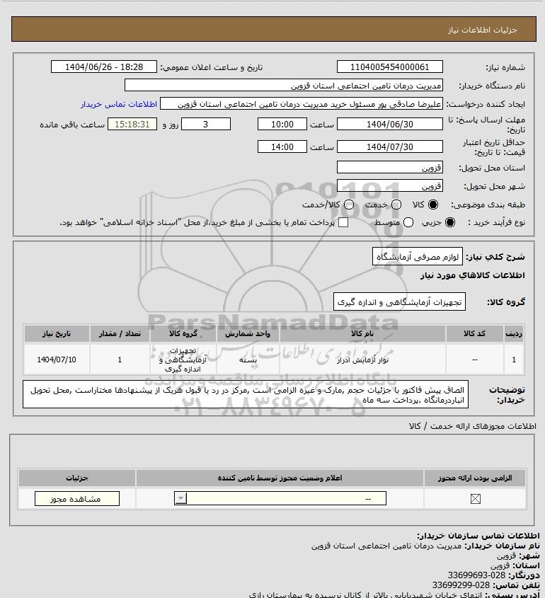 نام دستگاه خریدار:مدیریت درمان تامین اجتماعی استان قزوین