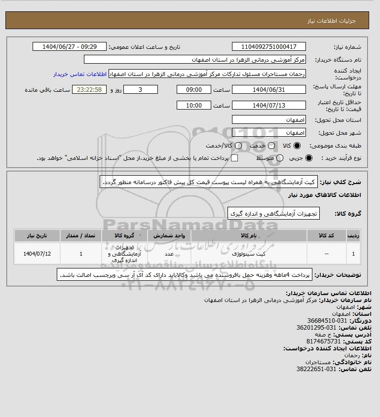 1 -- کیت سیتولوژی عدد تجهیزات آزمایشگاهی و اندازه گیری 1 1404/07/12