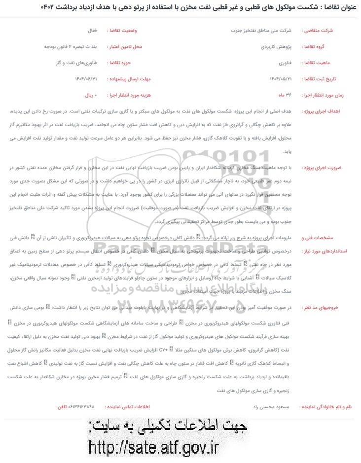 عنوان تقاضا : شکست مولکولهای قطبی و غیر قطبی نفت مخزن با استفاده از پرتو دهی با هدف ازدیاد برداشت 0402