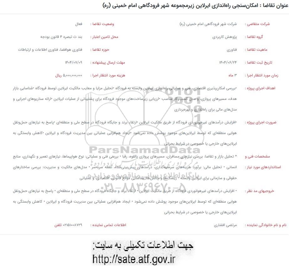 فراخوان امکان سنجی راه اندازی ایرلاین زیر مجموعه شهر فرودگاهی امام خمینی (ره), فراخوان امکان سنجی راه اندازی ایرلاین زیر مجموعه شهر فرودگاهی امام خمینی (ره)