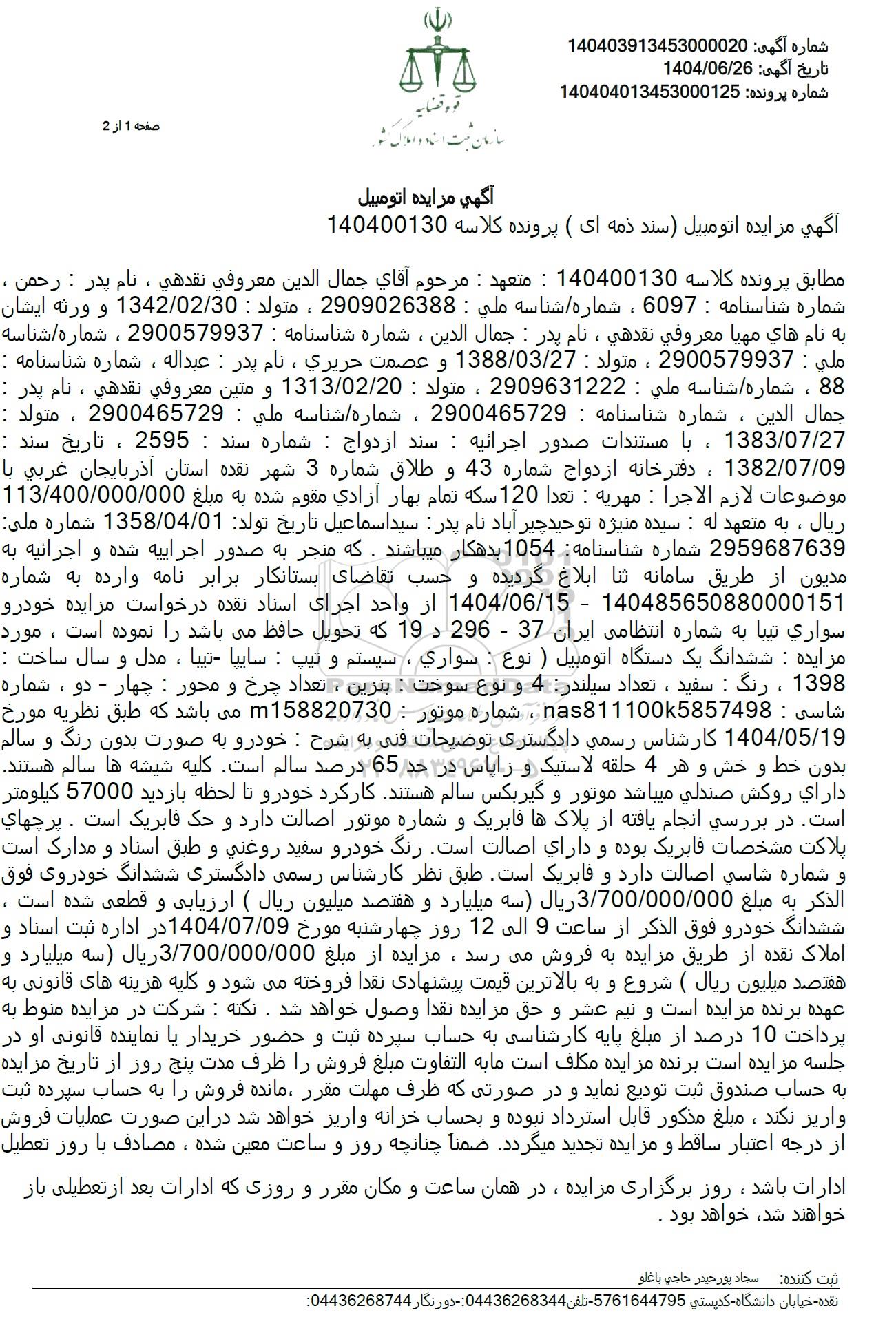تاریخ مزایده : 1404.7.9 روز چهارشنبه از ساعت 9 الی 12