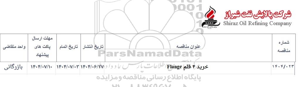 مناقصه خرید 4 قلم Flange از کلیه افراد متخصص و شرکتها واجد شرایط دعوت به عمل میآید در مناقصه با کد خبرگزاری پارس نماد: 9567891 شرکت نمایند.